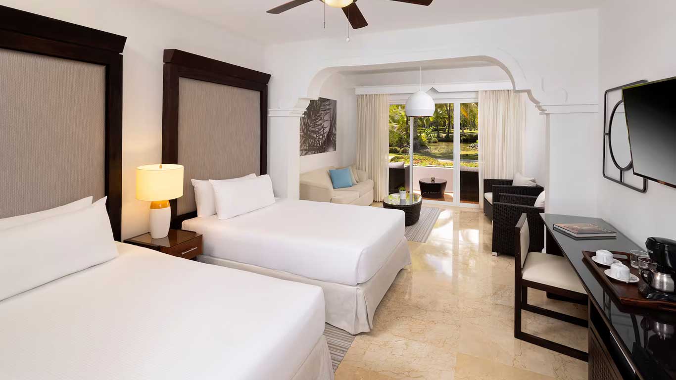 Chill out in the pleasant the Deluxe Room at Melia Caribe Tropical Resort, surrounded by tropical gardens. With a bedroom and adjoining lounge, equipped with a coffee machine, minibar, ironing facilities and bathroom amenities. It also has a beautiful terrace with garden views.